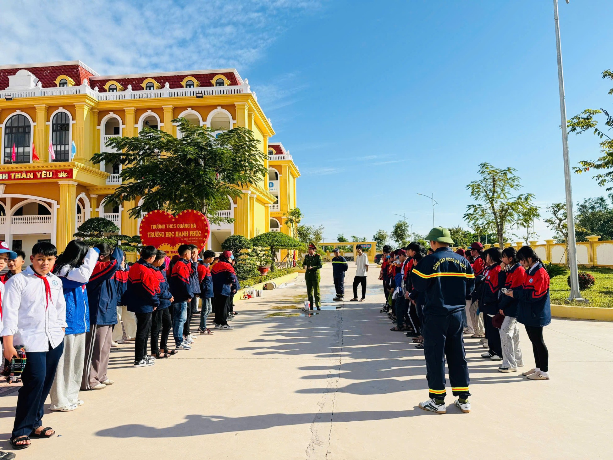 🌈🌈🌈Ngày 22/11/2025, Trường THCS Quảng Hà phối hợp cùng Phòng Cảnh sát PCCC & CNCH – Đội CC & CNCH Khu vực 8 tổ chức chương trình trải nghiệm TUYÊN TRUYỀN-THỰC HÀNH-RÈN KỸ NĂNG cho cán bộ, giáo viên, nhân viên và học sinh nhà trường năm 2025.
