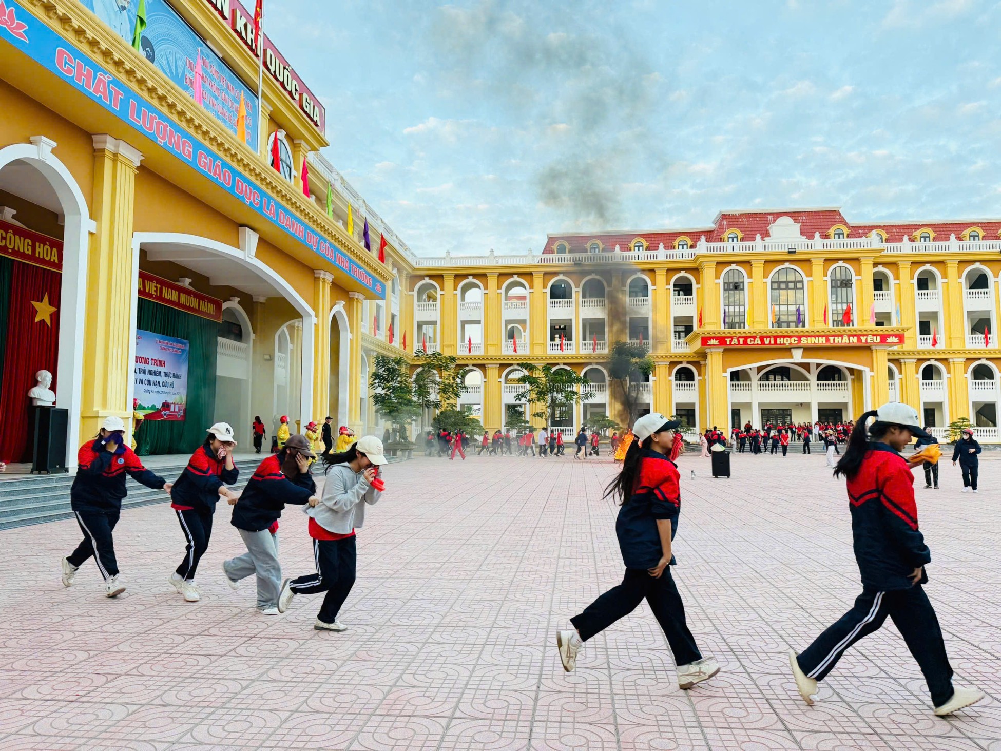 Các giáo viên, học sinh được trải nghiệm kỹ năng thoát hiểm, xử lý tình huống giả lập, góp phần hình thành phản xạ nhanh nhạy, bình tĩnh khi gặp sự cố.