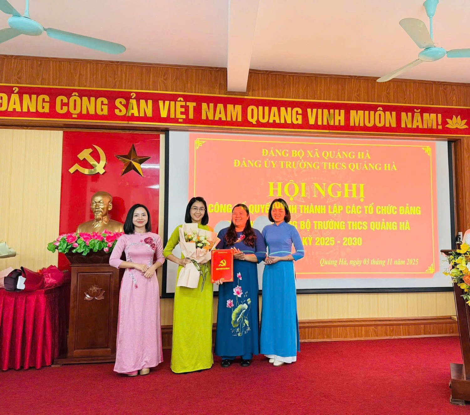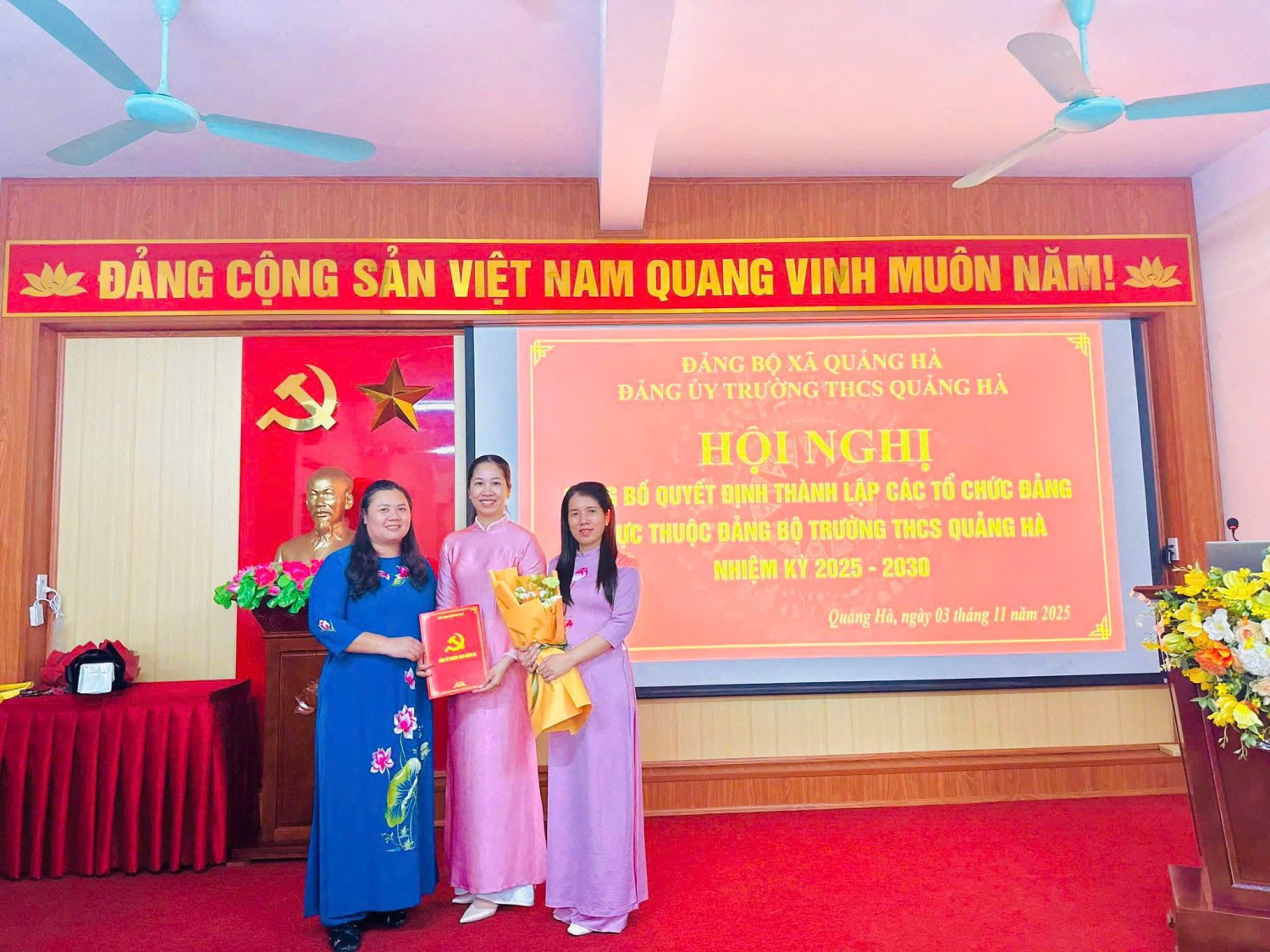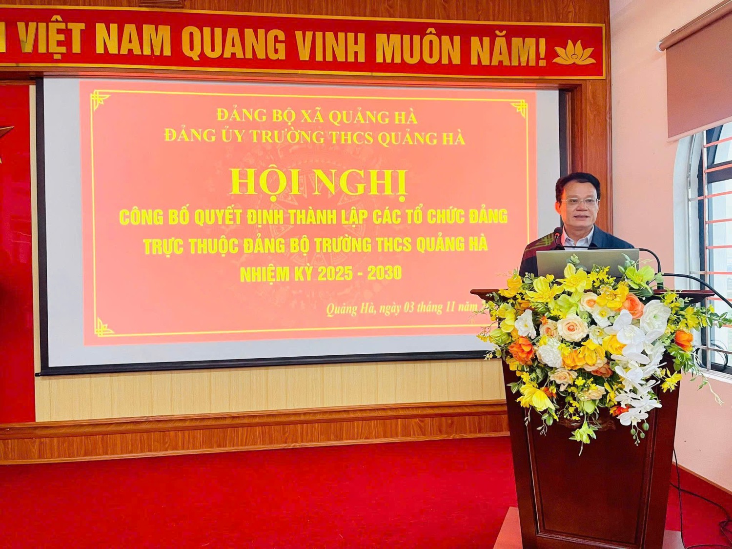 HỘI NGHỊ CÔNG BỐ QUYẾT ĐỊNH THÀNH LẬP CÁC TỔ CHỨC ĐẢNG TRỰC THUỘC ĐẢNG BỘ TRƯỜNG THCS QUẢNG HÀ, NHIỆM KỲ 2025 – 2030