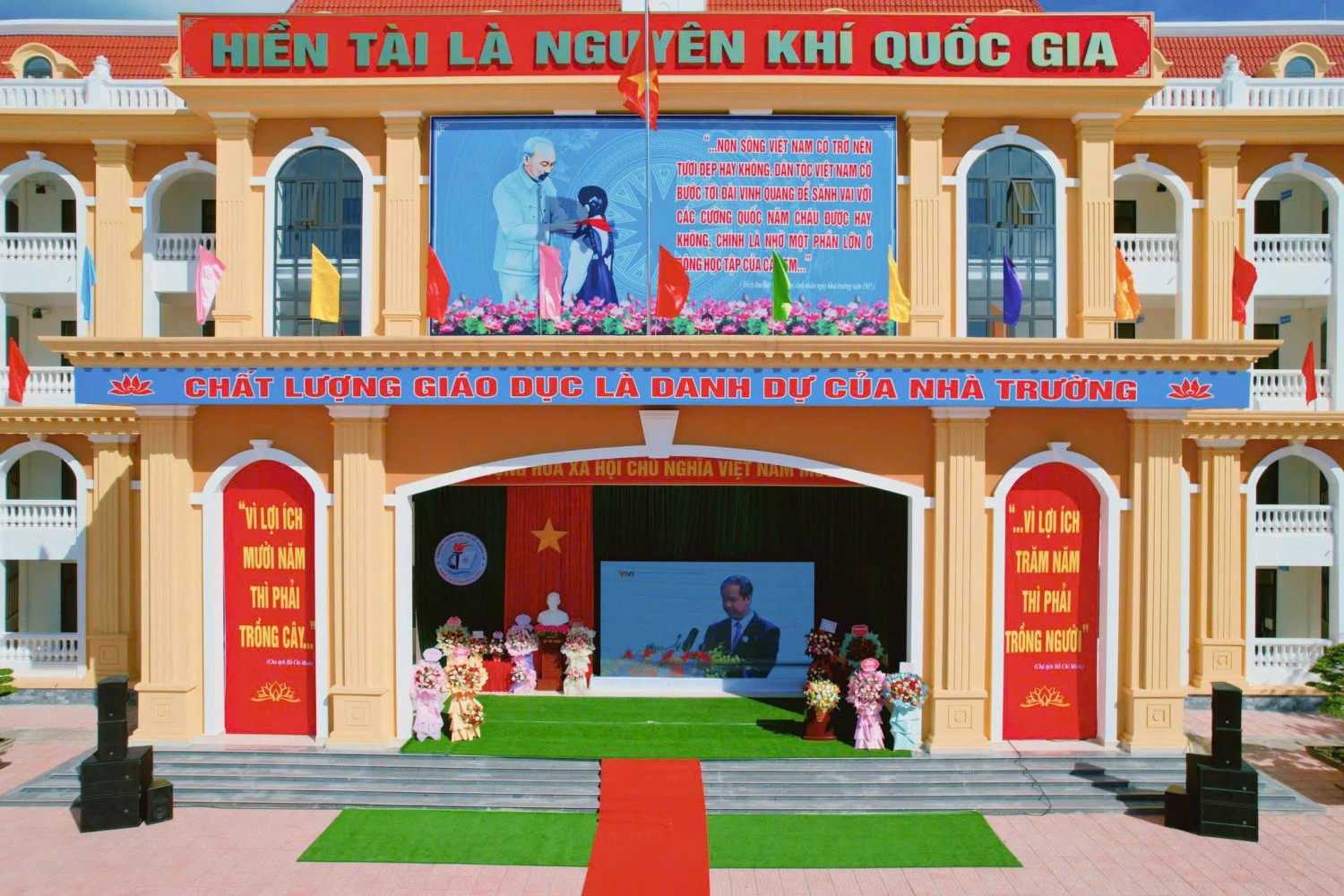 💐Buổi lễ vinh dự được đón tiếp Đồng chí Bùi Văn Vượng, Phó Bí thư Thường trực Đảng uỷ, Chủ tịch HĐND xã cùng các đồng chí lãnh đạo, đại diện các ban ngành đoàn thể địa phương, cơ quan, doanh nghiệp, đơn vị kết nghĩa, các bậc phụ huynh và toàn thể CB-GV-NV, 1140 học sinh của nhà trường🎈🎈🎈
